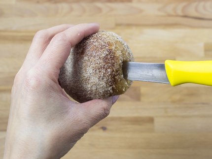 Using a sharp paring knife, make a small incision on one side of each beignet.