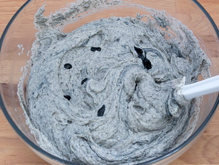 For a more dramatic black cake colour, add a few drops of black food colour to the batter and fold in.